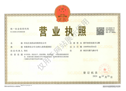 版權(quán)所有:河北巨龍藥業(yè)有限責(zé)任公司 冀ICP備19023826號(hào)-1 冀公網(wǎng)安備13058102000452號(hào) 證書(shū)編號(hào) :(冀)-非經(jīng)營(yíng)性-XXXX-XXXX
